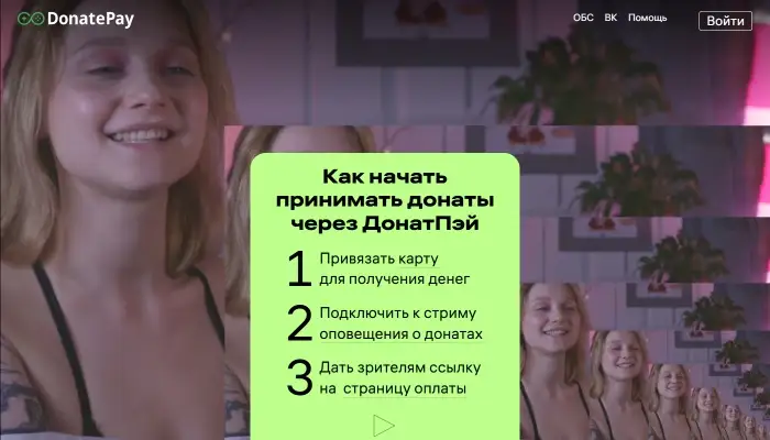 Оригинальный сервис, работающий на базе НКО Монета. Предназначен исключительно для стримеров – имеет все необходимые виджеты и интеграции. Список поддерживаемых платёжных систем небольшой, но достаточный для работы в РФ. Тарифы – средние по рынку (около 10% комиссии, если суммировать ввод и вывод). Основная проблема – лимиты по балансу (не более 60 тыс. руб. на счету).