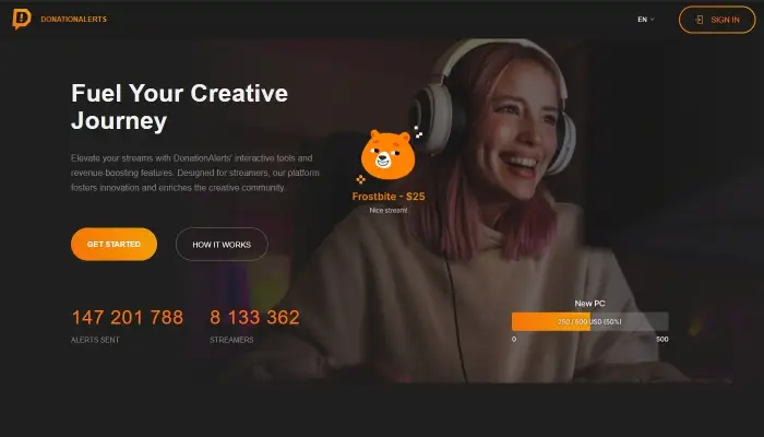 - Donate.Stream имеет API и может подключаться к OBS Studio и Telegram, есть все самые востребованные виджеты: оповещения, медиа, голосования, сбор средств, реакции, статистика и т.д.
