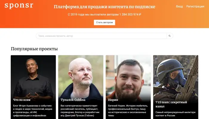 4. SPONSR – платформа для приёма донатов с размещением контента