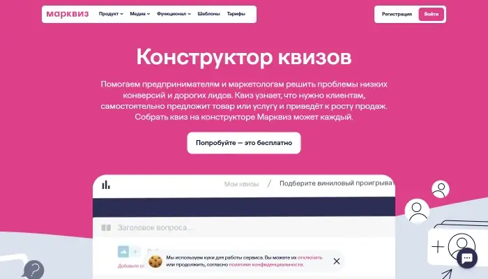 Продвинутый сервис для создания маркетинговых квизов и интерактивных форм. Он помогает собирать лиды, анализировать ответы и повышать конверсию. Сервис ориентирован на маркетологов и владельцев бизнеса, использующих квизы как инструмент продвижения.