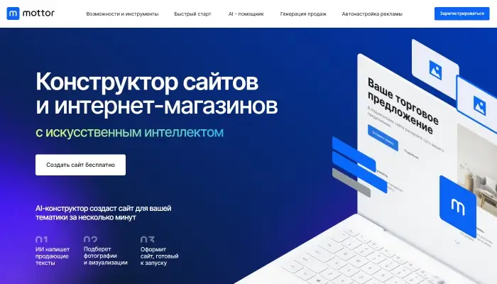 Если вам нужно быстро получить лендинг, визитку или небольшой интернет-магазин, логично оставаться в экосистеме классических конструкторов сайтов с ИИ (Mottor, Flexbe, Tilda и др.). Они закрывают типовые задачи без глубокого погружения в технические детали.